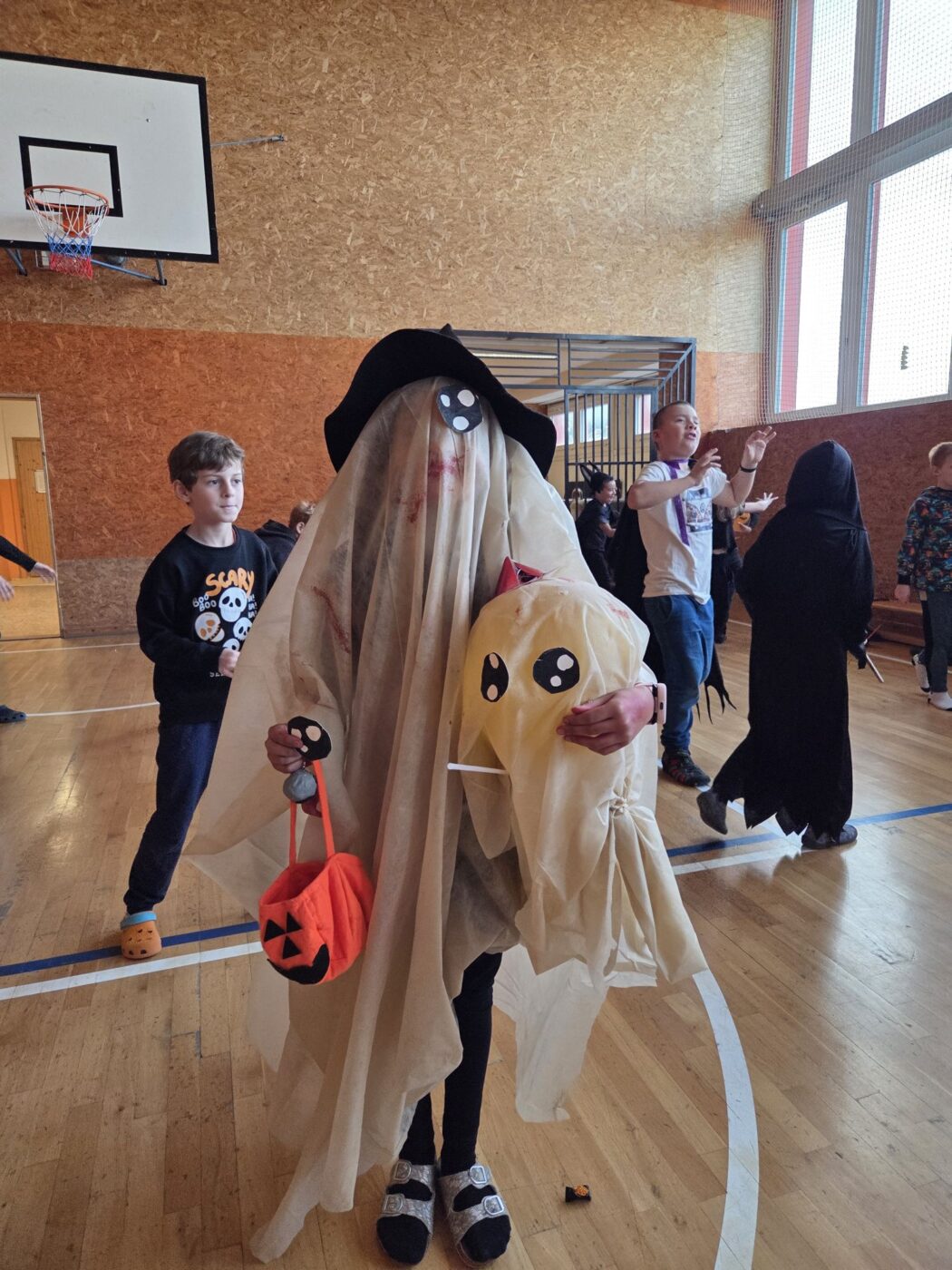 Tělocvičnu krásně vyzdobili sami žáci, a vytvořili tak tu správnou atmosféru. Nechyběl ani halloweenský průvod školou, při kterém se mohli maskovaní pochlubit svými originálními převleky i ostatním spolužákům.