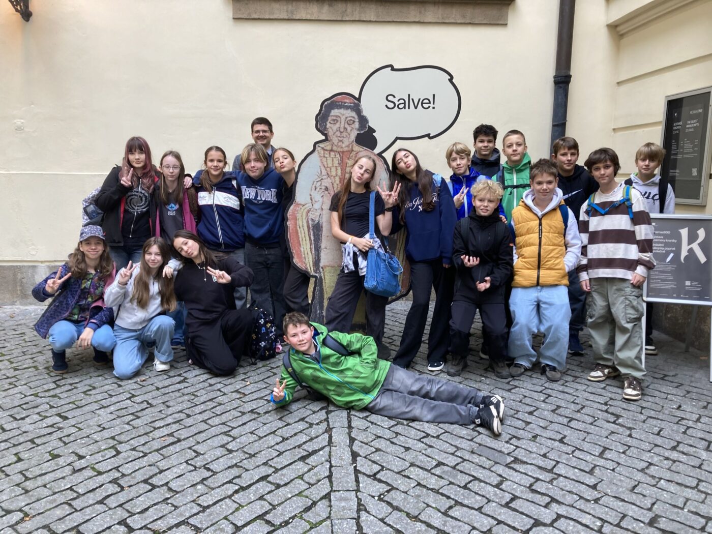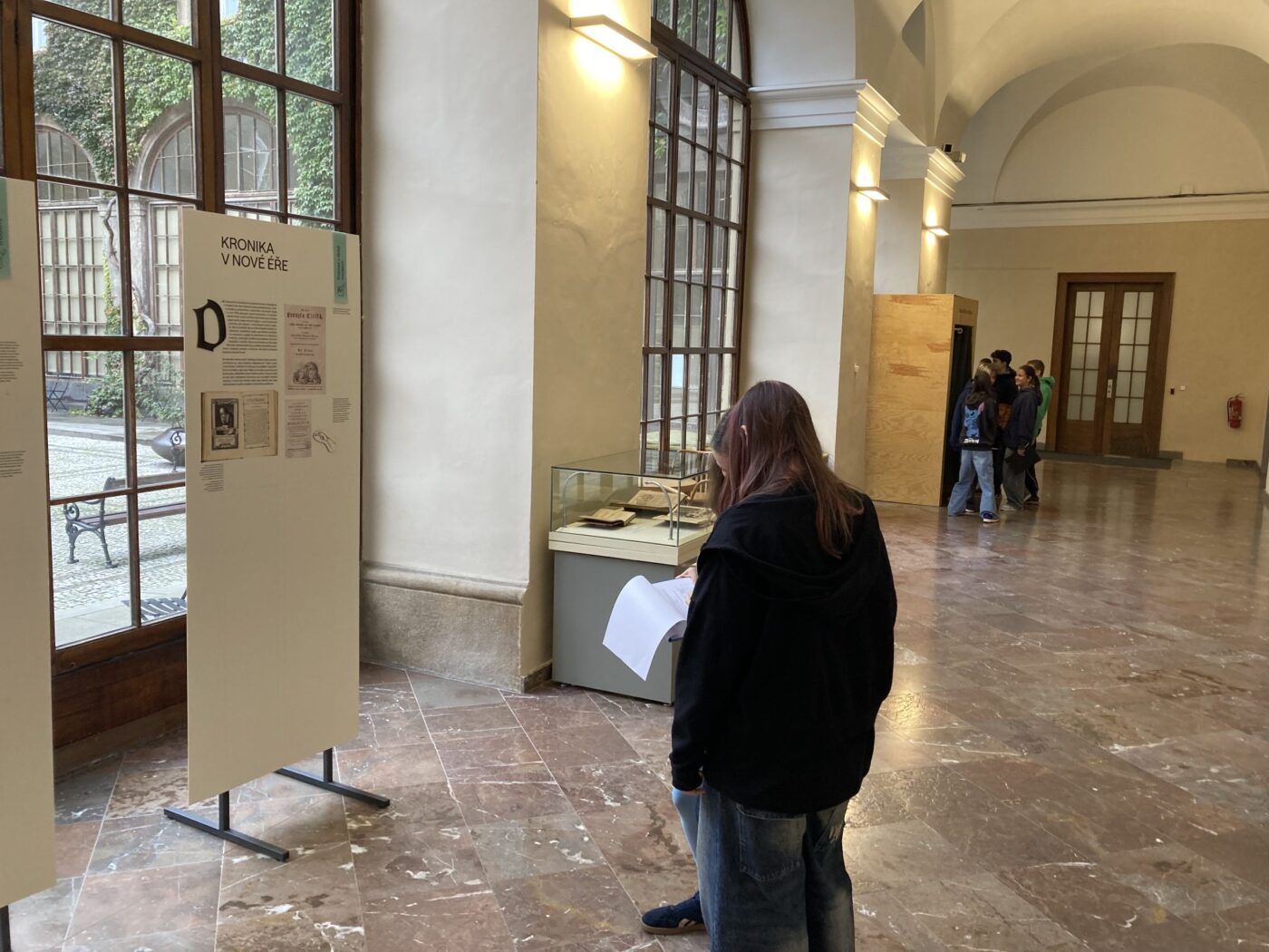 Po skončení programu jsme pokračovali do Galerie Klementinum, kde jsme navštívili třetí část výstavy nazvanou „Kronika v čase“. Zde si žáci prohlédli další historické dokumenty, které ukazují, jak Kosmovy příběhy inspirovaly pozdější kronikáře.