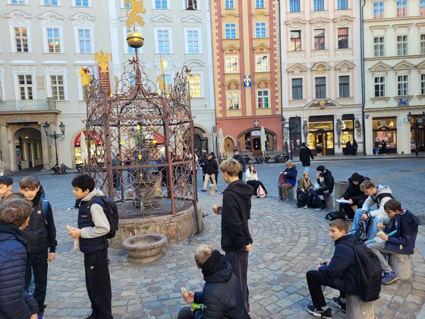 Ve dnech 14. a 21. září jsme s osmáky vyrazili po architektonických skvostech Prahy, přičemž jsme se zaměřili na barokní památky. Započali jsme na Staroměstském náměstí, kde jsme si u Mariánského sloupu připomněli reálie třicetileté války s pozastavením se nad popravou 27 českých pánů, která proběhla 21. června 1621. Dále jsme kolem gotického Kostelu Panny Marie před Týnem šli ke kostelu sv. Jakuba, kde jsme se pozastavili nad vstupním portálem. Zde jsme si vysvětlili rozdíl mezi pojem pieta a madona ve vztahu k vyobrazování Panny Marie. Se třídou 8. A jsme měli to štěstí, že jsme si mohli prohlédnout interiér tohoto fascinujícího kostela a nechali jsme zde na sebe dýchat barokní atmosféru. Díky tomu, že ke kostelu minoritů náleží i klášter, mohli jsme si prohlédnout i jeho chodby a sklepení.