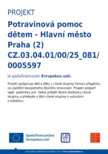 Škola je zapojena do projektu Potravinová pomoc dětem – Hlavní město Praha, který je spolufinancován Evropskou unií a podporuje děti a žáky z cílové skupiny formou příspěvku na zajištění bezplatného školního stravování. Projekt podpoří lepší podmínky pro řádný průběh školní docházky cílové skupiny a předejde u této cílové skupiny k vyloučení z kolektivu.